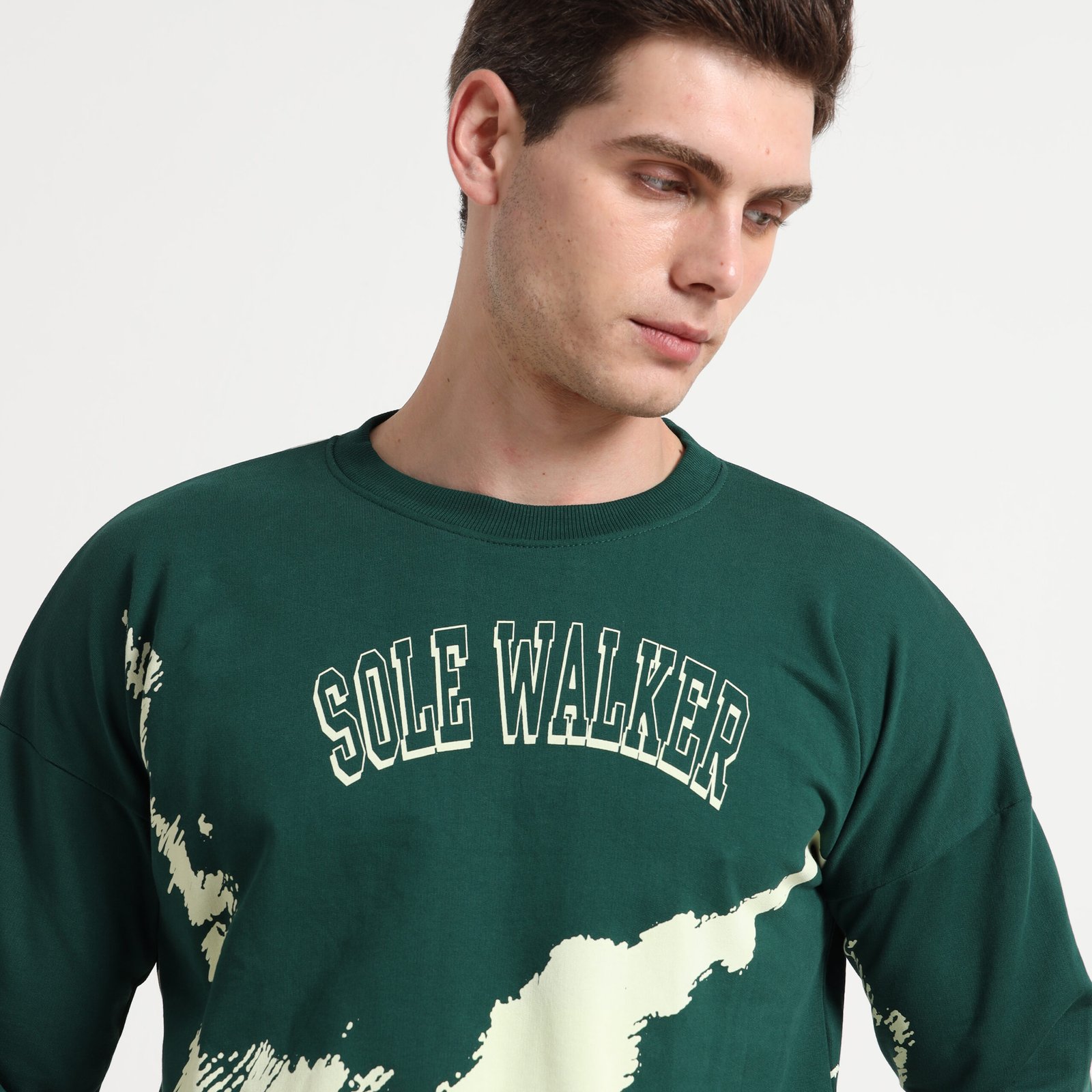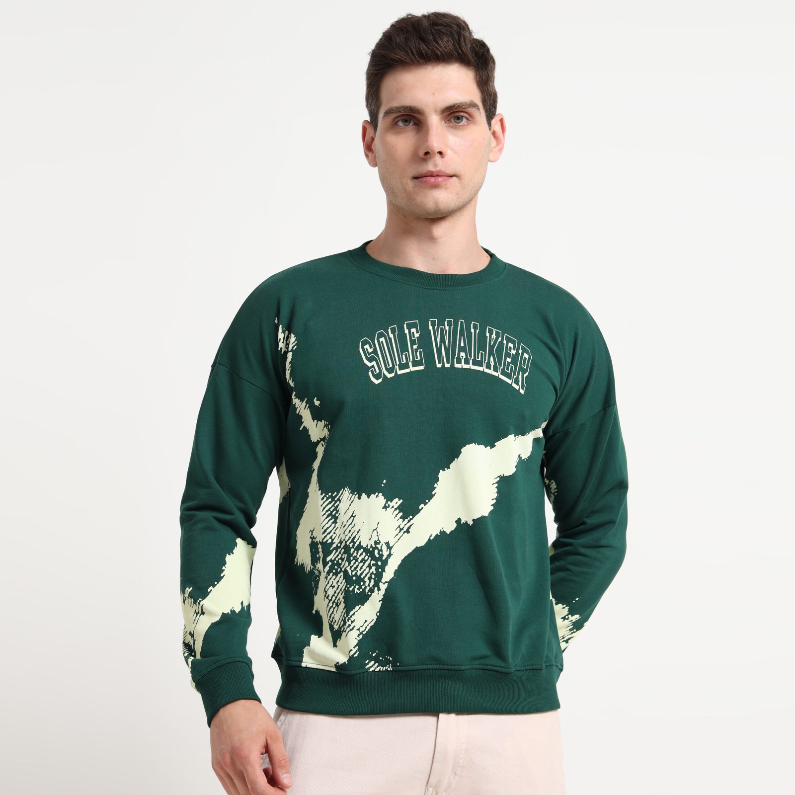 & Free ShippingSole Walker paint-effect, jersey style relaxed fit sweatshirt. Crew neck and drop shoulder.
